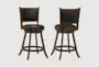 Elevate your dining or kitchen space with the Lester 24" Fabric Swivel Counter Height Stool With Back Set of 2. Designed with a traditional style, these stools feature a comfortable fabric seat and a sturdy Asian hardwood frame. The swivel functionality adds convenience and ease of movement, making it perfect for your dining or kitchen area.
