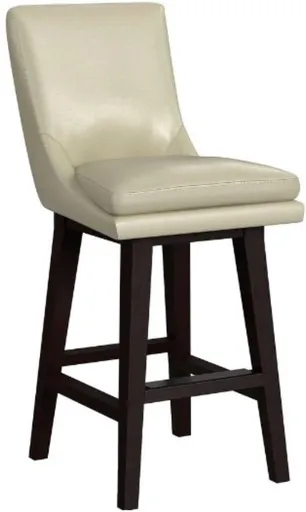 The Elements International Villanova Brown/Beige Swivel Bar Stool features a rustic yet stylish design. It has a dark brown wood finish with a comfortable cushioned seat upholstered in a matching fabric. The stool offers a 360-degree swivel function, a sturdy footrest, and elegant curved back detailing for added support.