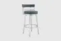 The Artesa 26" Counter Height Swivel Barstool combines modern design with mid-century flair, featuring a sleek blue faux leather seat and a brushed stainless steel frame. This stylish barstool is perfect for any contemporary kitchen or dining area, offering both comfort and functionality with its 360-degree swivel feature.