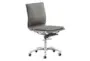 Enhance your workspace with the sleek and modern 12" Grey + Silver Armless Rolling Office Desk Chair. Designed with a minimalist aesthetic, this chair features a sophisticated gray color and a durable metal frame. The faux leather upholstery adds a touch of contemporary elegance, making it a perfect addition to any office, den, or study.