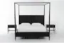 Transform your bedroom into a sophisticated retreat with the Austen Black California King Side & Footboard Storage Wood Platform Canopy 3 Piece Bedroom Set. This traditional set includes a stunning canopy bed and two convenient 1-drawer nightstands, all designed to offer ample storage and style. The black wood finish, crafted from oak veneer and solid rubberwood, ensures durability and timeless appeal.