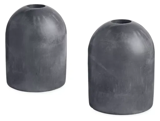 These modern candle holders are made from a special concrete formula that feels uniquely smooth. The recipe includes recycled stone dust to help keep waste out of landfills. Each candle holder is burnished with a sealer to protect the finish along with a cork bottom.