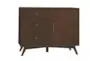 Enhance your entryway with the Mid Century Modern 40" Brown Walnut Wood Accent Cabinet. This stylish piece features a rich walnut finish and is constructed from mahogany solids and veneer, offering both durability and a timeless look. The cabinet includes one door and three drawers, providing ample storage space for your essentials.