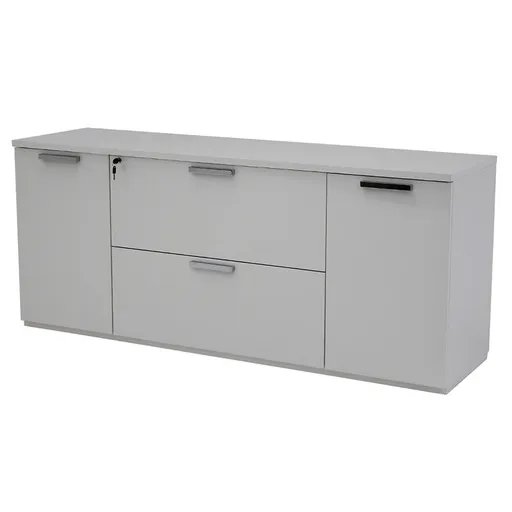 Modern Italian design shapes the clean-lined profile and glossy finish of the Sedona White Credenza. Drawers with a lockable key and shelves provide storage for your office needs. Coated with high-grade European polyester for a chic, glossy detailed finish.