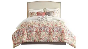 The Mariana king 7-piece comforter set brings a touch of beauty to your bedroom decor. This cotton comforter features a watercolor floral print that runs from the middle of the bed to the foot, for a beautiful transitional look. Two coordinating shams pair perfectly with the comforter, while three decorative pillows with embroidery and tufted details provide rich textural accents to the bed. A solid bed skirt adds the finishing touch to complete the cotton comforter set. Machine washable for easy care, this bedding set is also OEKO-TEX certified, meaning it does not contain any harmful substances or chemicals to ensure quality comfort and wellness.