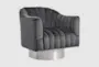 The Farrah Grey Velvet Swivel Accent Chair with Chrome Swivel Base is a stylish and modern addition to any living space. Its luxurious grey velvet upholstery and contemporary design make it a standout piece. The chair's swivel feature adds functionality and convenience, making it perfect for any room.