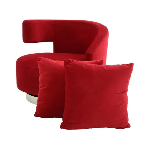 The Okru Red Accent Chair w/2 Pillows is the perfect addition to any living space. This chair is upholstered in a soft classic red polyester upholstery, so you can sit back and relax in comfort.