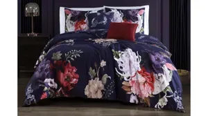 Bebejan Deep Purple Garden 5-pc. Reversible Comforter Set is a deep, rich eggplant purple background sets the stage for a lively bouquet of large, bursting flowers. The sophisticated and appealing color palette of this grand flower garden print will enhance any bedroom, while on the other side, a tone-on-tone leaf pattern provides a calm second look. The 18x18 pillow simulates the tonal leaf pattern of the reverse, but adds embroidery. The 2 shams and 12x18 pillow, all included, are printed and the entire set is made from a luxurious 100% cotton sateen. As a bonus, the set is packaged in a reusable self-fabric tote.