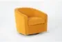 Dani Marigold Yellow Velvet Upholstered Accent Armchair brings luxurious movement to any space with its shapely barrel silhouette, smooth-swiveling mechanism and rich velvet upholstery. This design is the perfect bedroom chair, reading chair, club chair or accent chair for living room. You'll love the grounded color palette, which favors earth tones.
