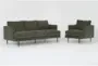 Introducing the Marques Heritage Green Fabric 2 Piece Sofa & Arm Chair Set, a perfect addition to your living room. This Mid-Century Modern set offers a stylish and comfortable seating solution in a striking heritage green color. Designed with a firm comfort level, this set features solid hardwood tapered legs and matching cushions, making it both functional and aesthetically pleasing.