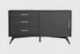 Add a touch of mid-century modern style to your living room with this 50" TV stand. Featuring a sleek black finish and crafted from mahogany solids and veneer, this piece combines both functionality and aesthetic appeal. Its small rectangular design is perfect for compact spaces, providing ample storage with one door and three drawers.