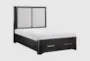 Introducing the Brekken Black Queen Wood & Upholstered Platform Storage Bed, a perfect blend of modern design and functionality. This queen-sized bed features a sturdy MDF frame and plush 100% polyester upholstery, ensuring both style and durability. The sleek black finish complements any bedroom decor, while the built-in storage drawers provide ample space to keep your essentials organized and within reach.