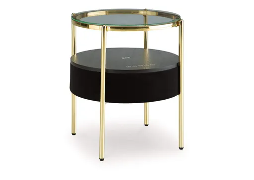 Discover the perfect combination of contemporary style and space-saving functionality. The Nedman accent table is designed with an integrated speaker (complete with wireless charging and touch-button controls), allowing you to effortlessly stream your favorite tunes wirelessly. Its sleek glass top perfectly complements the modern black fabric on the sides. This table is gonna be music to your ears.