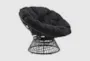 Soleil Black Fabric Swivel Papasan Chair with Dark Grey Wicker Frame | High Performance Fabric | Solid | Armless | Furnzy.com - Shop local furniture stores in one place