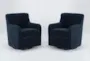Katrina Velvet Blue Fabric Swivel Glider Arm Chairs Set of 2 | Furnzy.com - Shop local furniture stores in one place