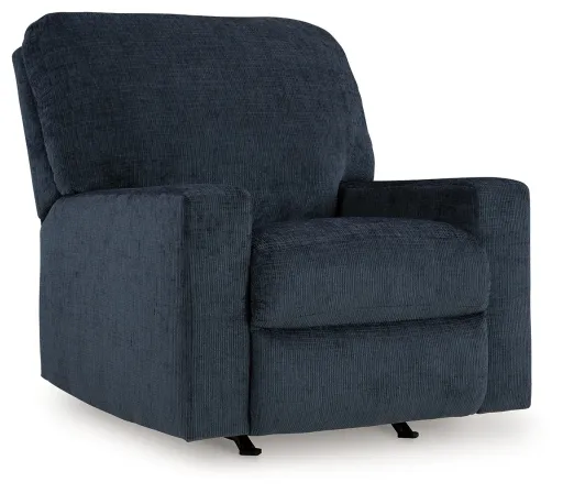 Looking to make a bold statement with color? Liven up your living room with this rocker recliner. Its trend-right navy blue upholstery adds a playful pop of color to your decor. Pairing posh style with everyday comfort, this piece is a welcome addition to contemporary spaces.
