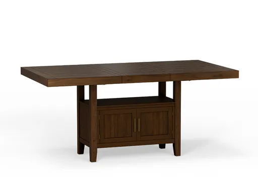 The Toffee Pub Table combines practical storage with refined design, making it a perfect centerpiece for elevated dining spaces. Crafted from rubberwood solids and oak veneers in a rich walnut brown finish, this pub height table offers durability with timeless appeal. Its tall design adds a sense of presence, while the warm finish and clean lines allow it to blend seamlessly into both traditional and contemporary interiors. Ideal for family meals, gatherings, or casual entertaining, the Toffee Pub Table is as functional as it is stylish.