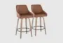 Experience the perfect blend of style and comfort with the Hana 26" Transitional Fixed Height Counter Height Stool. This set of 2 stools features a swivel design, allowing for easy movement and accessibility. The whitewashed wood and camel faux leather upholstery bring a touch of modern sophistication to your dining room.