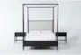 Transform your bedroom into a serene retreat with the Austen Black Queen Side Storage Wood & Upholstered Platform Canopy 3 Piece Bedroom Set. This traditional set includes a stunning canopy bed and two 1-drawer nightstands, offering both style and function. The rich black finish and upholstered details create a timeless look that complements any decor.