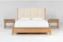 harland queen wood & upholstered panel 3 piece bedroom set with 2 1-drawer nightstands | pine