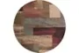 This modern round fiber rug features a stunning geometric pattern in a harmonious blend of dark red, dark brown, camel, pear, charcoal, black, and tan colors. It's designed for indoor use and has a low pile, making it perfect for high-traffic areas. Made from 100% polypropylene, this rug offers durability and a comfortable feel underfoot.