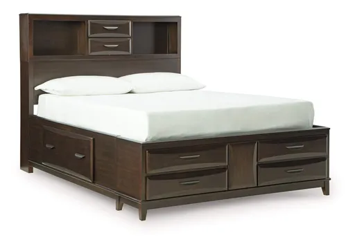 A rich, metropolitan finish. Unbeatable function. With the Vanmore full storage bed, it’s a breeze to create a casual contemporary hideaway full of style and convenience. It combines thoughtful craftsmanship and handy storage, with assorted drawers to help you maintain an organized and clutter-free space. Cubbies in the headboard keep bedtime reads close while also acting as the perfect perch for bedroom decor.