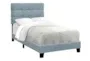 Experience comfort and style with the Lucy Light Blue Twin Velvet Upholstered Button Tufted Panel Bed. This traditional bed is perfect for a bedroom or kids' room, offering a cozy and inviting space for rest. The light blue velvet upholstery and button tufted detailing add a touch of refined charm to any sleeping area.