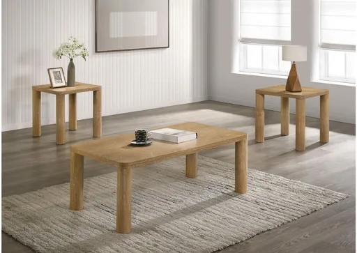 3. Castlewood 3-piece Cocktail Coffee Table Set Light Oak