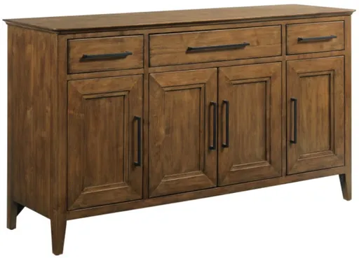 Closed storage remains a top request that we hear from designers and homeowners alike. The Larson buffet offers flexible storage with three spaces behind the doors and three full depth drawers. Independently adjustable shelves are found behind the three doors.