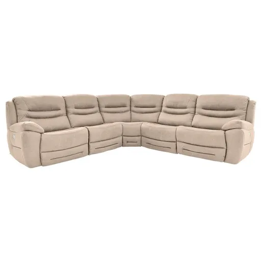 Every living room needs a staple. Perhaps yours is the Dan Cream Power Reclining Sectional. This transitional 5-piece is designed to take up space, while also providing a sense of warmth with its wide seating, neutral tones and soft performance fabric. Featuring two dual power recliners on the left and right, this transitional design keeps convenience top of mind. You can adjust the power headrests, charge your devices using the built-in USB ports, and keep your TV watching essentials nearby with the storage console. This full comfort layout can also be organized in unique combinations to fit your space.