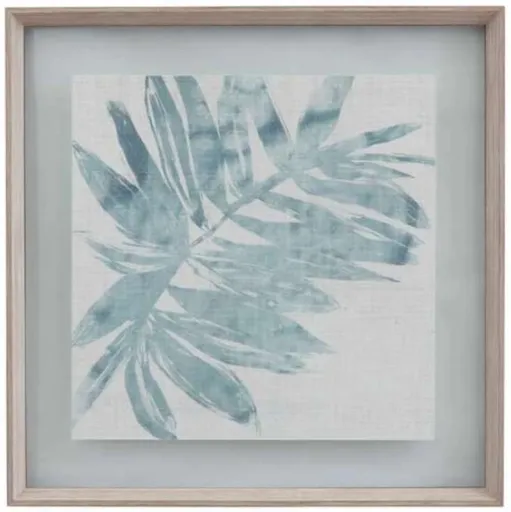 The Bassett Mirror Burlap Ocean Palm I Framed Print features a serene palm design set against a textured burlap background. Its calming colors and natural style evoke a coastal vibe, making it a perfect addition to any beach-inspired or relaxed decor.