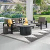Chelsea Textured Black Aluminum and Weathered Teak Outdoor Wicker Concealed Cushions 3 Piece Sofa Group 48 in D Fire Pit Table