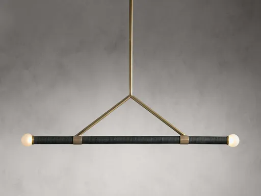 Iconic modern design with a mixed-material twist—Randall features a stunning burnished brass finish complemented by your choice of brown or black leather detailing. Two globe bulbs complete Randall’s charming modern appeal and disperse light at every angle.