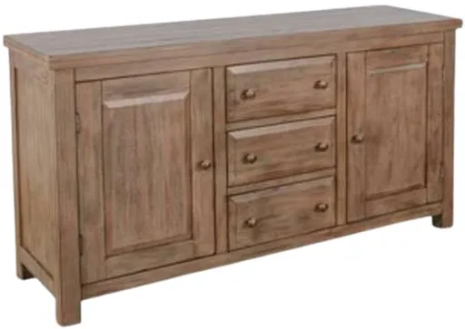 The Sunny Designs Doe Valley buckskin buffet provides sturdy storage with ample space for dining essentials. Featuring multiple drawers and cabinets, it helps keep items organized and easily accessible, making it a practical addition to dining rooms or entertaining areas.
