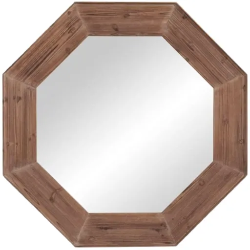 Reminiscent of a seaside cottage window our Granby wall mirror is fashioned from weathered straight-grain driftwood. The wood gain pops in the large octagon shaped frame. Its aged patina makes it look like your own antique store discovery.