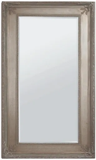 Enhance the ambiance of your living space with the Prazzo floor mirror, a captivating fusion of traditional aesthetics and intricate detailing. Featuring a large silver frame adorned with ornate carvings, this mirror exudes timeless charm. Finished in an antique silver leaf color, it adds a touch of sophistication to any room.