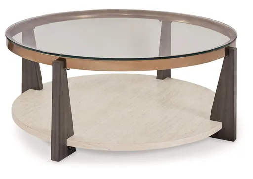 A modern twist on mixed-media design, the Frazwa coffee table is totally brilliant. Solid wood legs and a faux travertine shelf merge splendidly with the metal frame for a fresh, contemporary aesthetic. Casters allow you to roll it wherever you please. Talk about the perfect spot for cocktails and morning coffee to land.