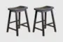 Enhance your kitchen or dining room with the Marcel Black Wood Saddle Kitchen 23.5" Counter Height Stool Set of 2. These rustic counter height stools offer a comfortable and stylish seating solution. With a sturdy wood construction and a curved saddle design, they are perfect for any food prep or serving space.