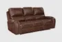 Experience comfort and functionality with the Domino Faux Leather 87" Manual Reclining Sofa. This brown faux leather sofa features a convenient dropdown table and USB ports, making it perfect for any living room. Enjoy the casual style and practical features that make this sofa a great addition to any home.
