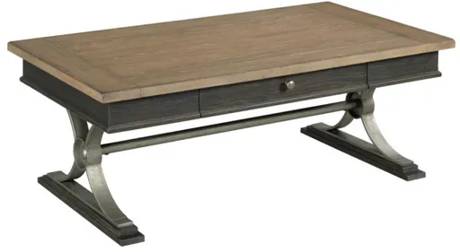 The Hancock coffee table has one drawer, and a metal stretcher. Made with cathedral grain, White oak and using a casual two-tone finish, the Hancock collection is right at home in a broad range of décor. The rustic, two-tone finish blends with metal accents and has a casual vibe due to the hand antiqued application.