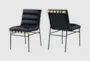 The Barten Black Vegan Leather Fabric Dining Chair with Black Leg Finish is a perfect addition to any modern dining room or kitchen. This armless set of 2 chairs combines style and comfort, crafted from durable vegan leather and supported by sturdy iron legs with an oak veneer finish.