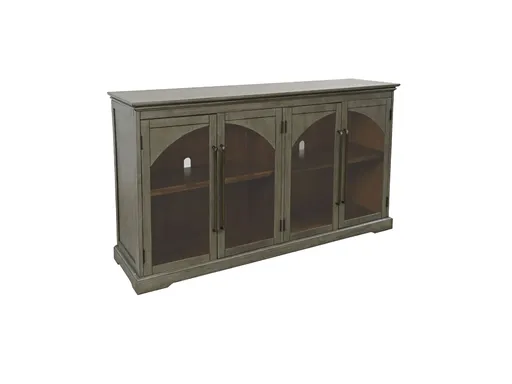 The Brady Grey 65" Console is a striking and functional addition to your entertainment area. With its sleek grey finish, this console exudes a sophisticated appeal that complements any modern decor. The console features four doors adorned with arched glass windows, offering a glimpse of the contents inside while adding an elegant touch to the design. Inside, you'll find two shelves that provide ample space to store media devices, gaming consoles, and other entertainment essentials. The dark metal hardware adds a touch of contrast to the overall look, enhancing the console's visual appeal. Moreover, the light contrasting interior wood creates a stunning backdrop for your entertainment equipment. Whether you're watching movies, gaming, or simply displaying decor, the Brady Grey 65" Console effortlessly combines style and functionality to elevate your living space.