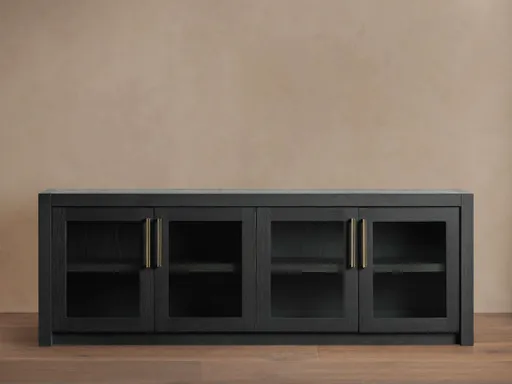 Featuring bold, minimalist silhouettes, our Bodhi Collection is a new take on rustic that honors the beauty of simple construction while emphasizing the gorgeous grain of natural white oak. Each piece is carefully built by craftsmen and hand-finished—wire brushed and sanded before a six-step application of stain, glaze, sealer, and lacquer to achieve an elegant, “organically aged” patina. Equipped with spacious storage for electronics, media, and décor, Bodhi is accented by beautiful brass hardware finished in a subtle champagne tone.
