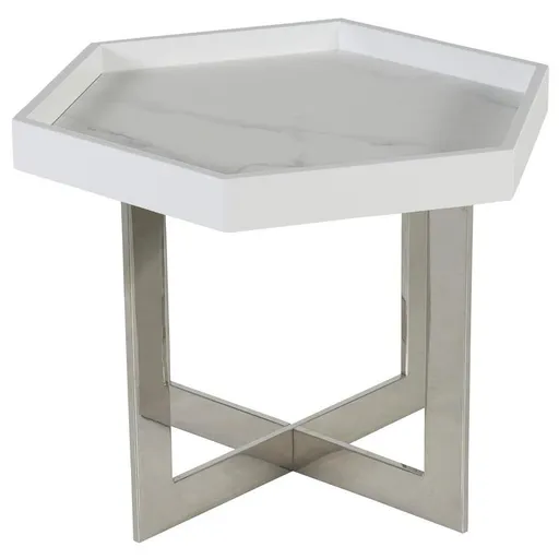 Bring some elegance to your space with the Lexon Large Coffee Table. Featuring a unique hexagonal shape, this piece has a stunning marble-inspired top and crisscross frame. Its modern style and smooth glossy look only add to its eye-catching appeal.