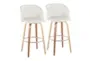 Introducing the Hanne 29" Barstool With Swivel in Zebra Wood and White Faux Leather. Perfect for your dining room or kitchen, this set of 2 barstools combines contemporary style with comfort. The white faux leather seat and backrest are complemented by the sturdy zebra wood legs and round chrome metal footrest.