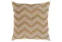 Add a touch of contemporary style to your bedroom with the Accent Pillow-Cameron Chevron Gold Metallic Fabric 18X18 by Surya. This square pillow features a striking gold and beige chevron pattern that will enhance any decor. Made from 100% linen, it offers both comfort and durability.