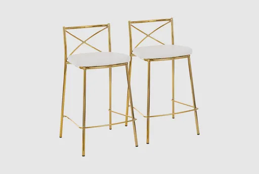 $250.00Living Spacesharlon 25" gold + white metal faux leather counter height stool set of 2 | swivel | x back | armlessSaveAdd to List