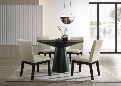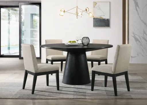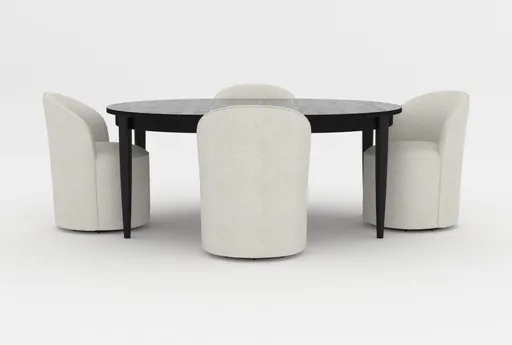 $1,235.00Living Spacesausten black 54-72" round to oval dining table + mira barrel upholstered armless chair set for 4
